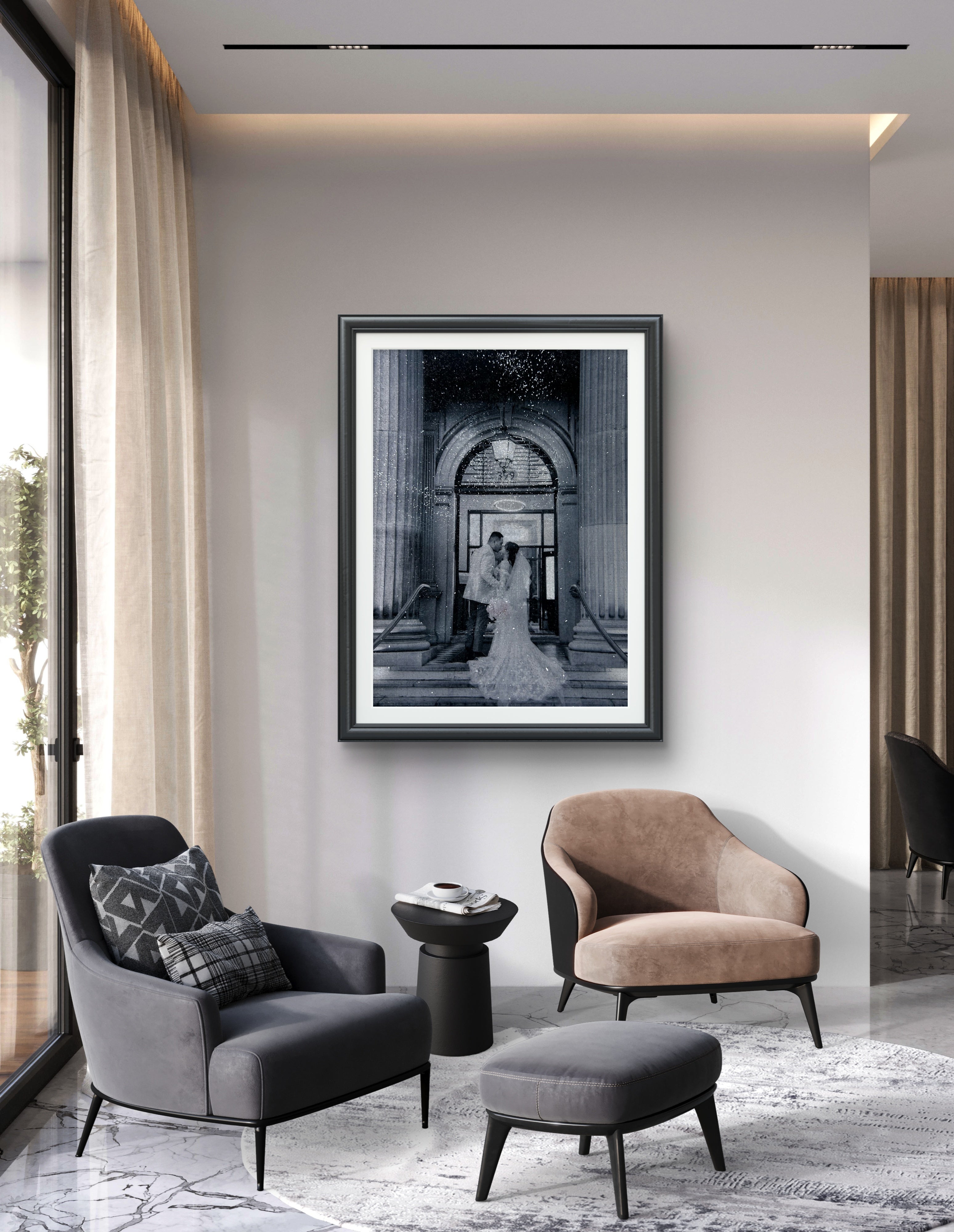 Transform your space with our bespoke diamond dust prints that radiate elegance.